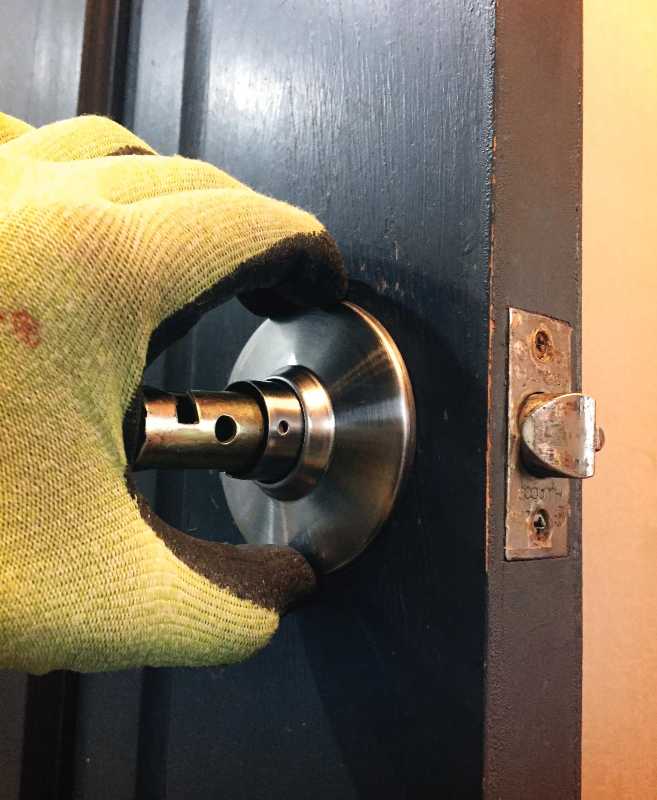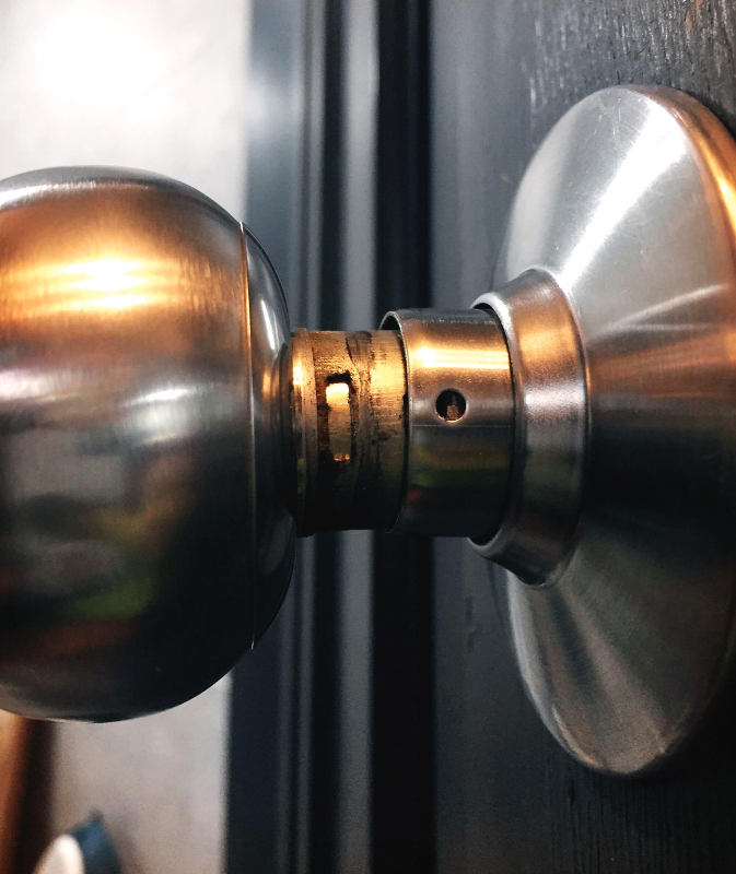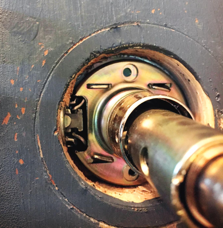 왼쪽에 보시면 문손잡이와 래치가 만나는 부분이 보이시죠?