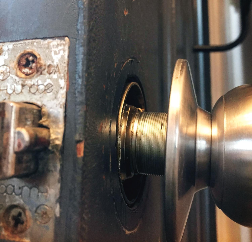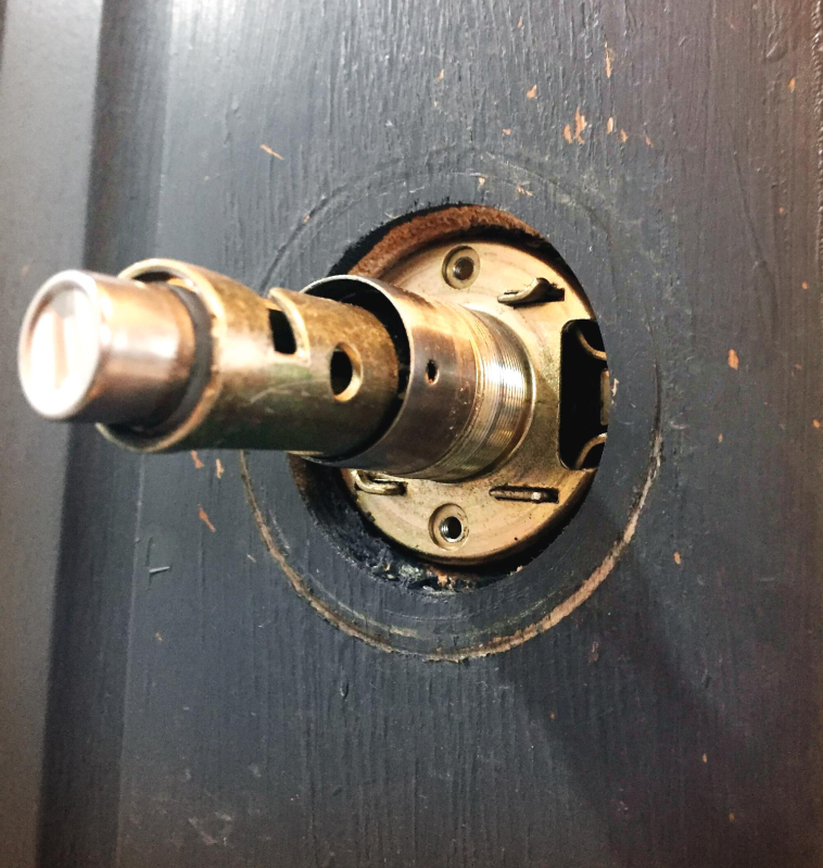 왼쪽에 보시면 문손잡이와 래치가 만나는 부분이 보이시죠?