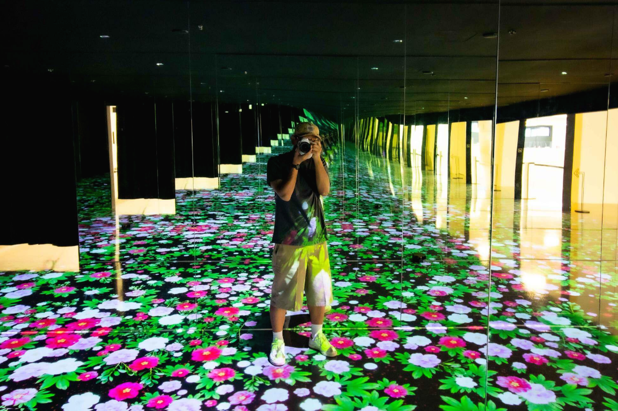 사방에 거울로 꾸며놓은 길에