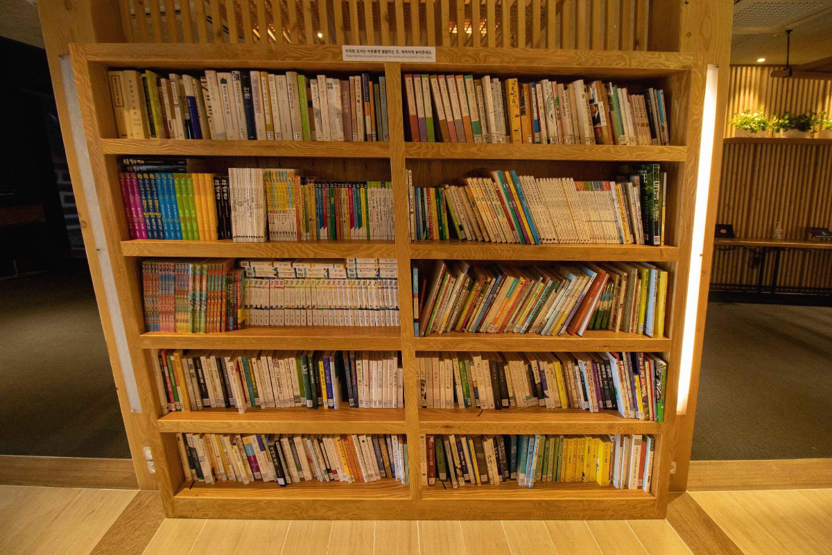 다양한 책이 준비된 책장들과
