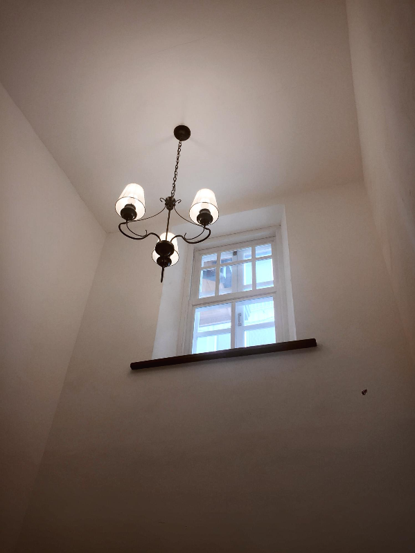 높은 창문과 전등으로