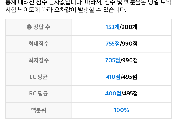 예상 점수대가 705~755점이 나오더군요