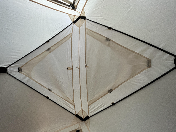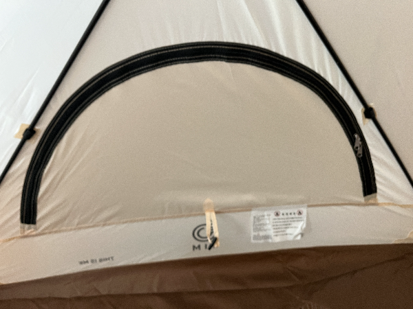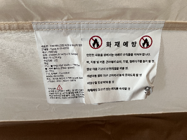 텐트 안쪽에는 제품에 대한 태그와 위헌 안내도 있어요
