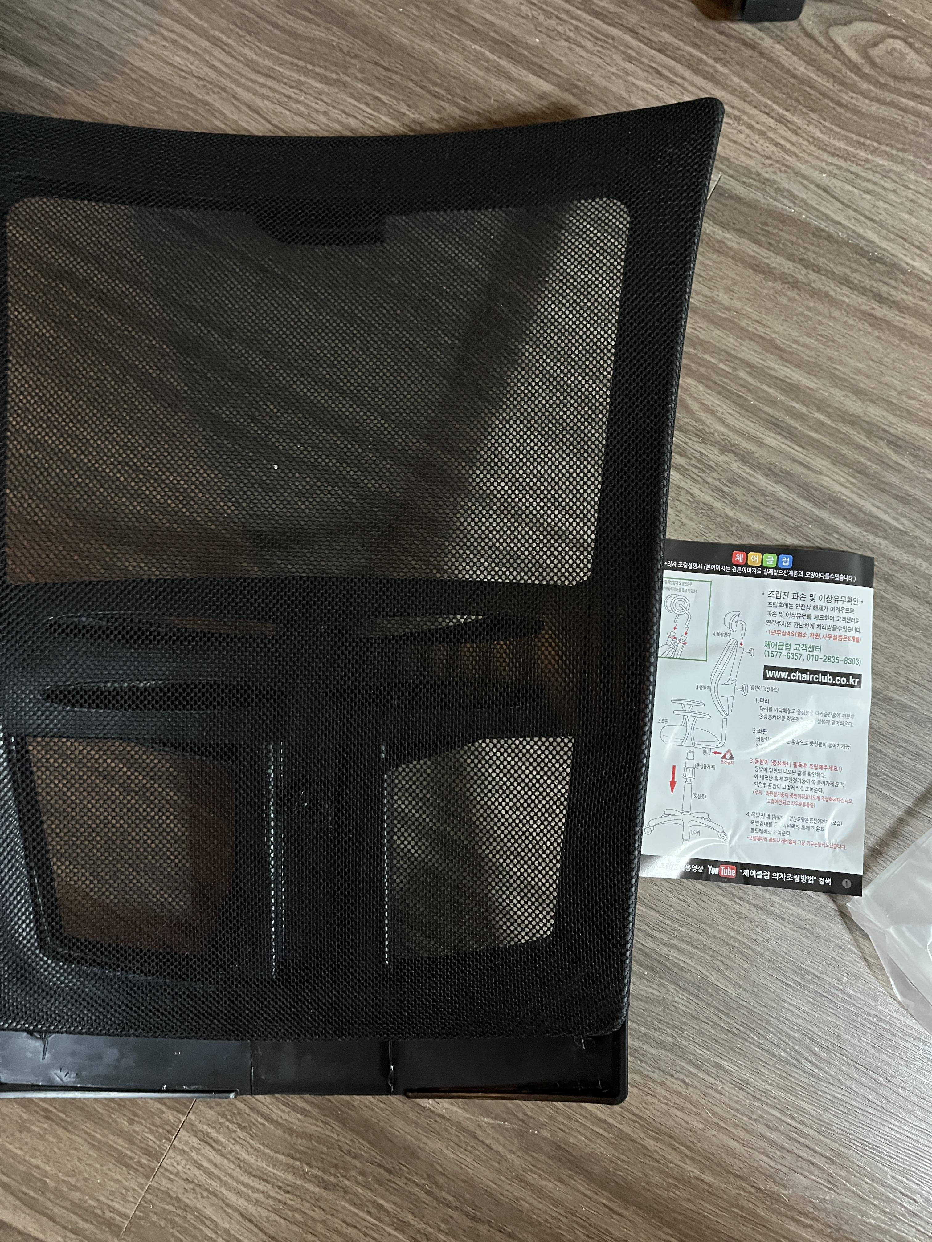 우선 메쉬로 된 재질의 등받이를 홈에 끼워주시고