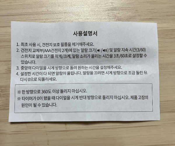 바로 옆에 두고 사용할 생각이라 시간도 3초로 설정했답니다.