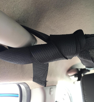 차량의 네 군데에 있는 손잡이에 연결하는 구조예요