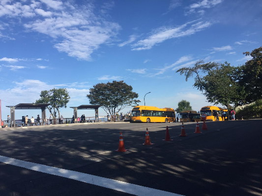 버스들이 주차되어 있는 공간을 만날 수가 있어요