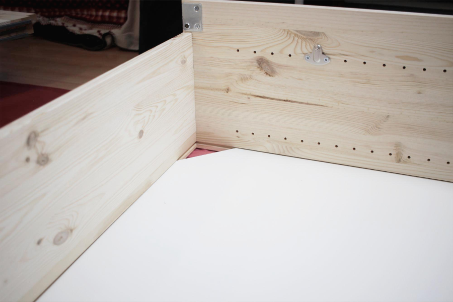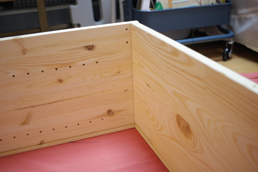 안쪽에 얇은 합판 끼울 라인 맞춰서 조립을 해줍니다.